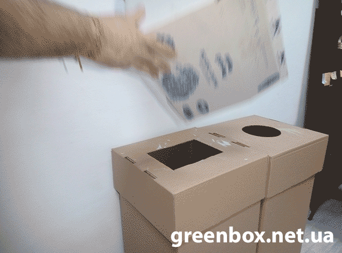 Що зробити: максимально стиснути, викинути в контейнер для паперу чи поставити збоку, якщо не вміщається в контейнер.